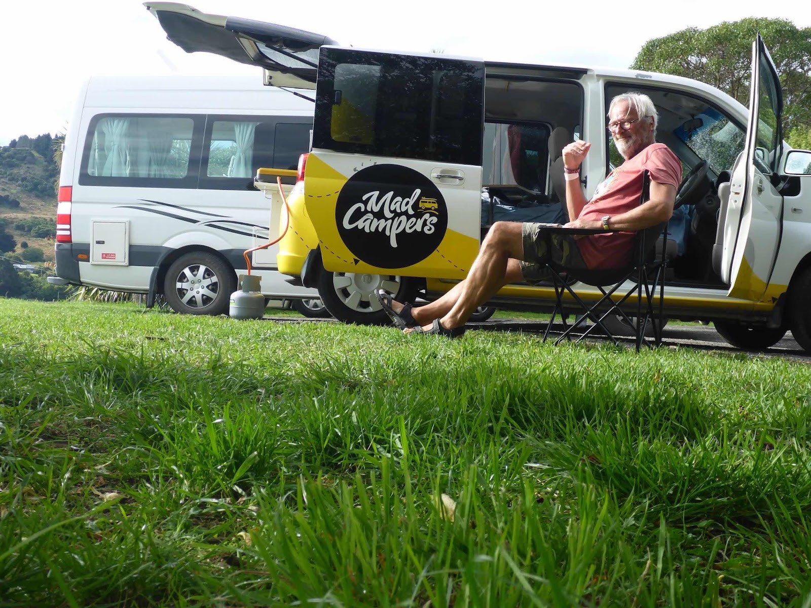 Die erste Nacht. Camping im Womo ist für mich neu. Habe ich noch nie gemacht. Und gestern Abend: das war schon mal richtig toll. Ich war lange draußen, bis mir langsam kalt wurde. Dann hatte ich noch ein nettes Telefonat mit einer Freundin aus uralten Tagen. Wir haben uns auf der Uni kennengelernt und nun hat mir wiederum eine andere, gemeinsame Freundin mitgeteilt, dass Bärbel auf der Nordinsel unterwegs ist. War also quasi ein Ortsgespräch.